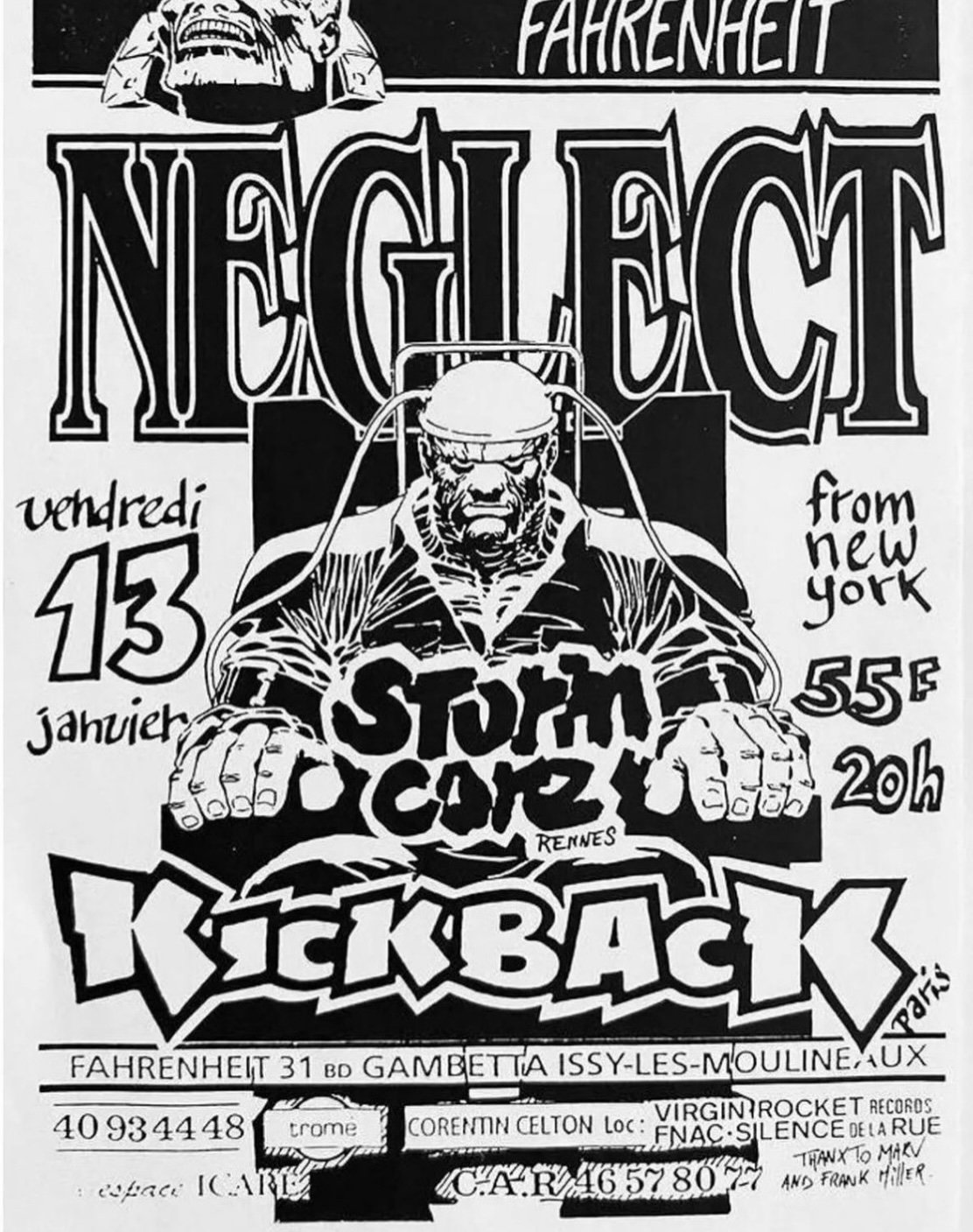 Limited quantities of each design are up now for preorder for one week or until they are sold out. Original Neglect design featuring “Marv” from Sin City in the front and back.Inspired by a flyer from a show Neglect played in France with Kickback and Stormcore. These shirts will be available on Comfort Colors or Gildan Heavy Cotton. Make sure you select the correct blank when ordering. If you wanna use PayPal to check out message me directly.